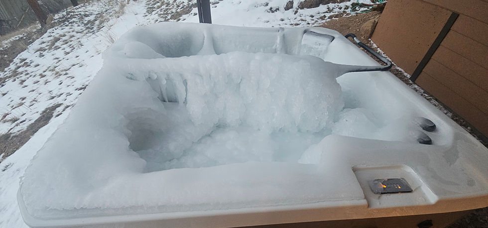 Typically, a hot tub will shut down if the water level gets too low, and it senses less water flowing through the heater. This is what will truly kill a hot tub by freezing and busting pipes, pumps, and heaters. Thankfully, this hot tub was brand new, and continued to try to run and heat without shutting off. That is really what saved this hot tub. Luckily, the owner also had an on-demand hot water system, and we were able to fill the tub with warm water. Of course we had to remove 90% of the ice first.